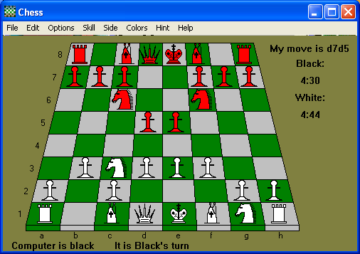 One of the most interesting CHESS games out there, this version of CHESS called GNU CHESS, it is developed by various players, designers and so forth. The object of the game follows the rules of chess but there are certain features that are implemented then just the standard point and click. If you were wanting to move a piece via the keyboard, then you could use an algebraic notation to move the pieces.