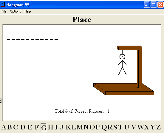 Hangman 95 is freeware. For some reason I just felt like making a hangman game and thought I would share it with anyone else who wants it… ~ Larry Allen