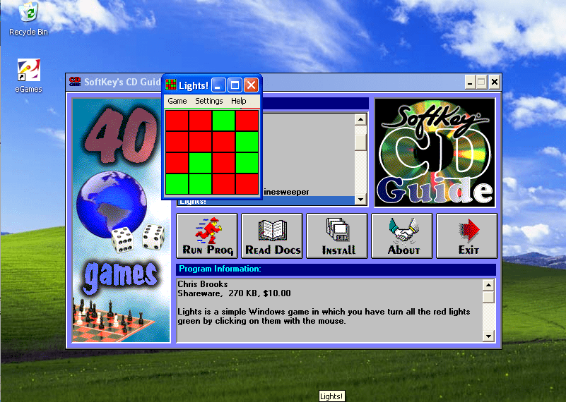 Lights is a simple game where you have to turn all the red lights green by clicking them. Now there is options for the game such as difficulty level, changing the grid size and the buttons can have three states instead of two. This is a simple game to play but challenging enough to win at. There really isn’t much to say about the game as if you have played Lights out before then you really aren’t missing anything here.