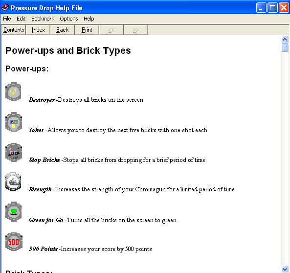 There are different types of power ups to help you out like the JOKER powerup that allows you to destroy the next five bricks or the DESTROYER that will eliminate all bricks on the screen. There are also different brick types that allow for different combinations of destruction which allow variation.