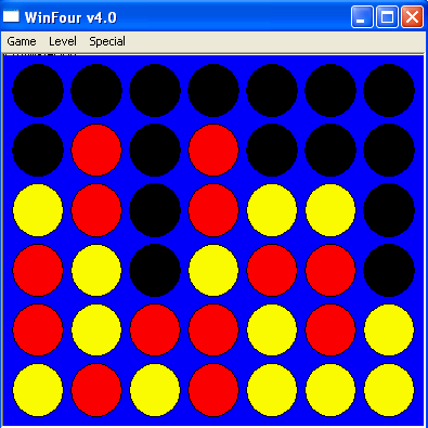 What is so special about WINFOUR? Well it is in its simplicity. Here we have Connect 4 but called WINFOUR for Windows 95. You are tasked with connecting 4 circles or dots of the same color either diagonally, vertically or horizontally against the computer.